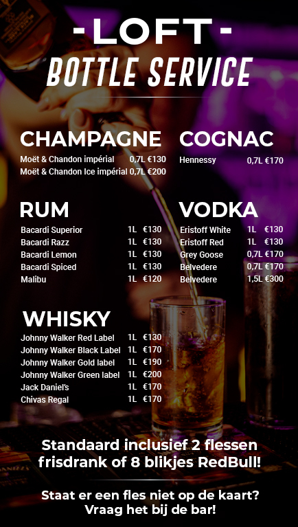 Reserveer de bottle service in LOFT en krijg een privé tafel voor jou en je gasten!*